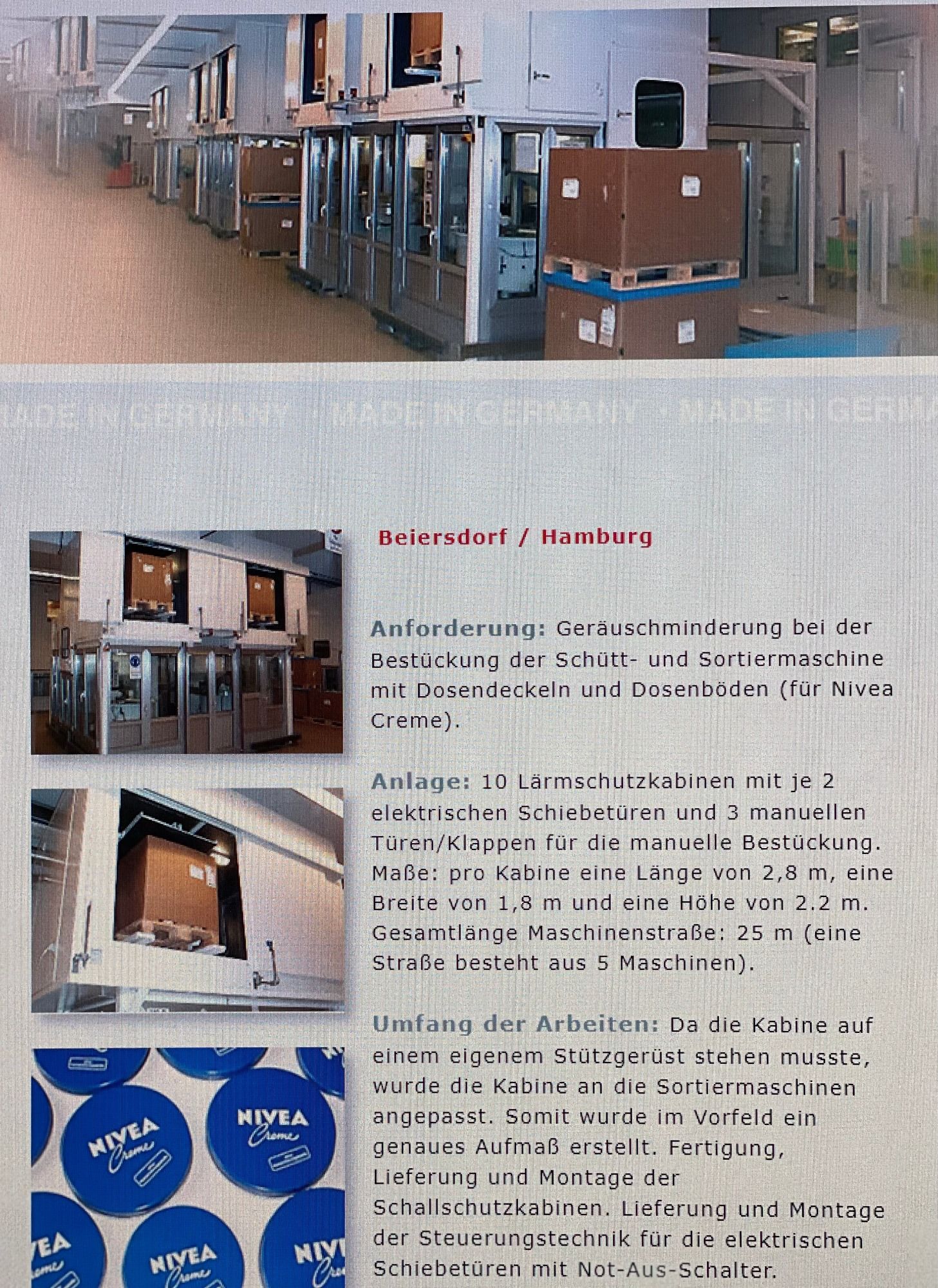 Wir sind ein Industrieunternehmen, dessen Unternehmensziel die Herstellung und der Vertrieb von Kabinen, Gehäusen, Räumen und Wandsystemen für Lärmschutzkabinen und Maschineneinhausungen ist.